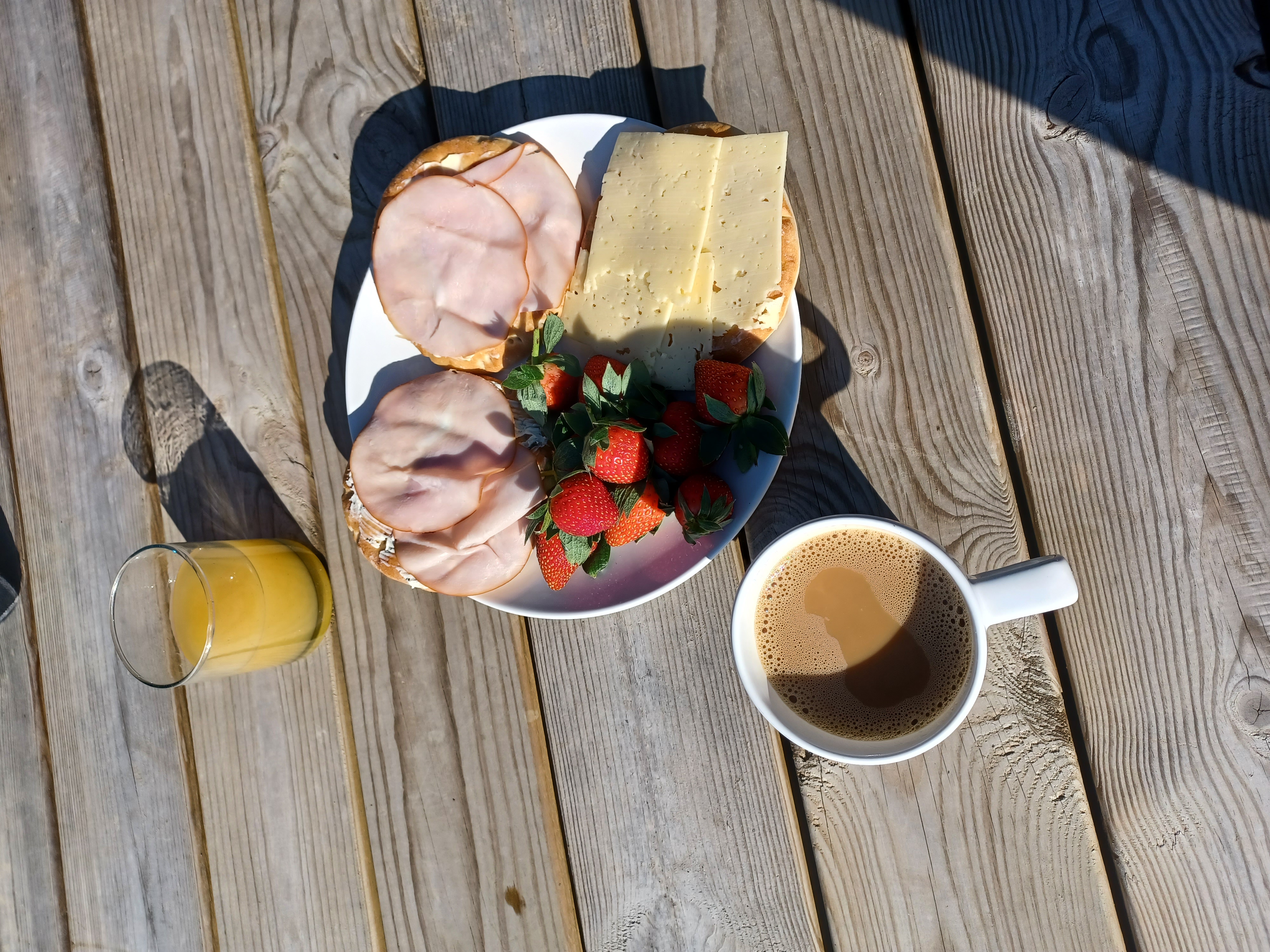 Första frukosten på bryggan 😍 kaffe och en macka smakar sällan mycket bättre.