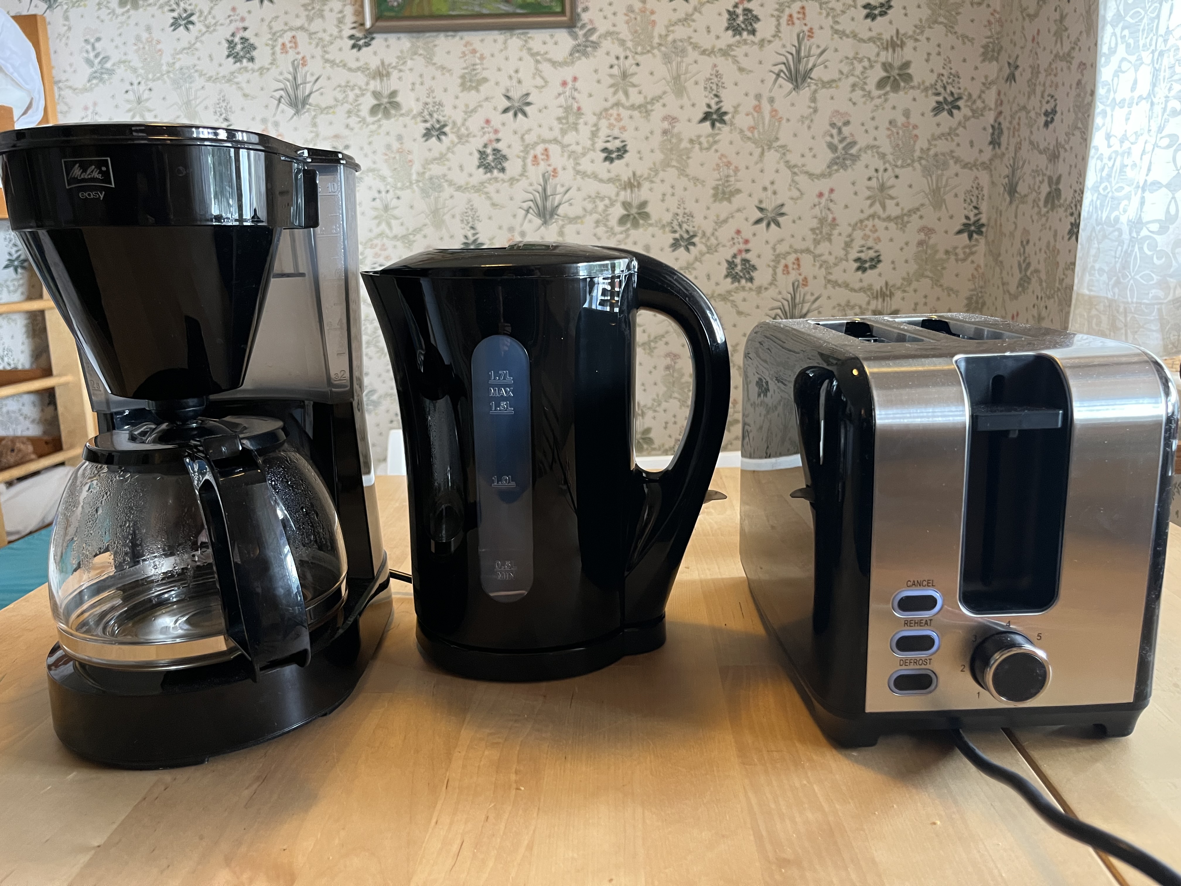 Ingrid, Adele och jag är här på spontanbesök.  🙂 Väderutsikten såg bättre ut när vi åkte ut men det har inte hindrat badandet.   Kaffebryggare och vattenkokare uppgraderade och en brödröst ingår numera i stugans utrustning. Bara en hårsmån från femstjärnigt nu!  Pumpens backventil är rensad också.